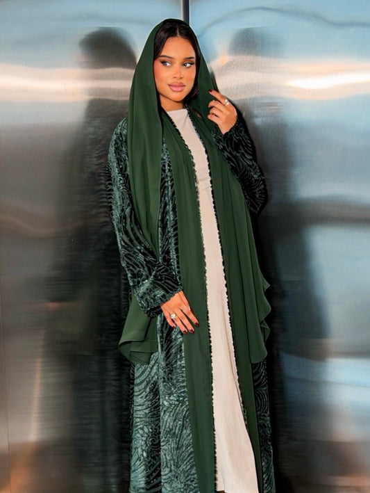 MEI661 - Green Velvet Abaya
