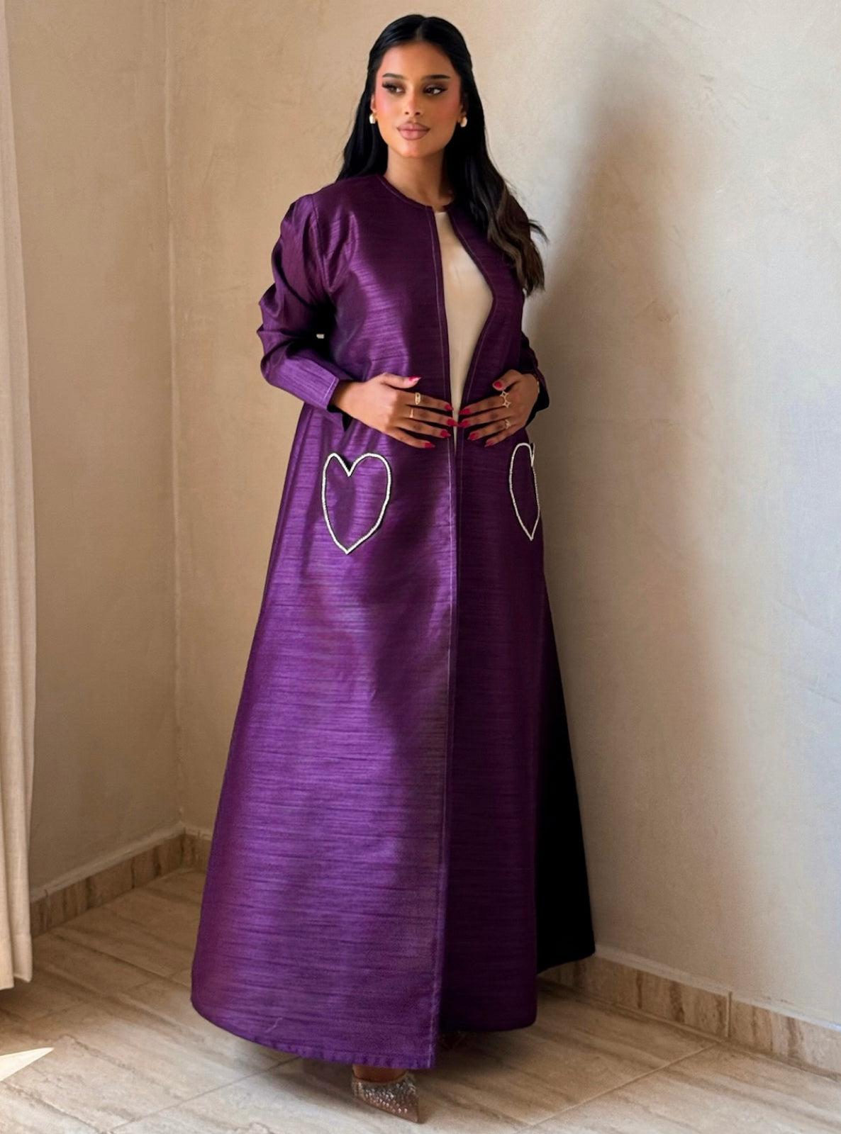 MEI721 - Maroon & Pink Hearts A-Cut Organza Abaya ♥️🩷