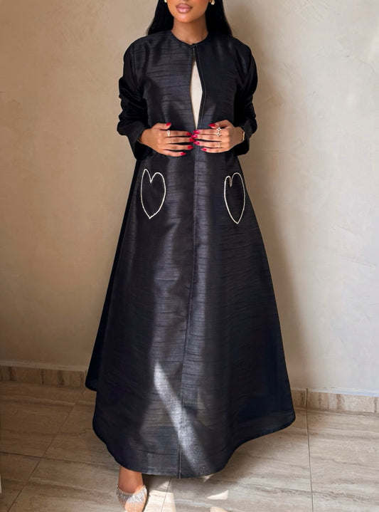 MEI719 - Black & White Hearts A-Cut Organza Abaya 🖤🤍