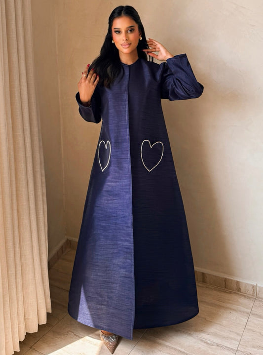 MEI727 - Navy A-Cut Taffeta & Crystals Abaya with Headscarf