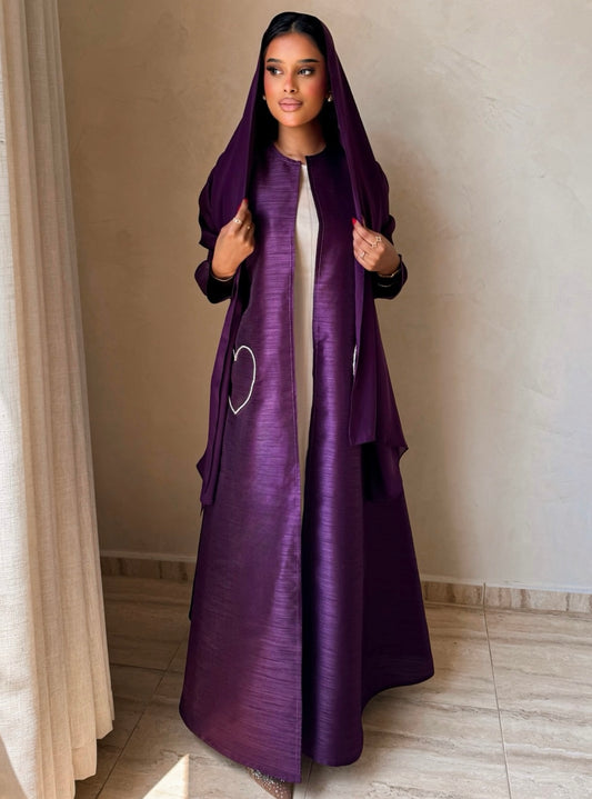 MEI731 - Purple A-Cut Taffeta & Crystals Abaya