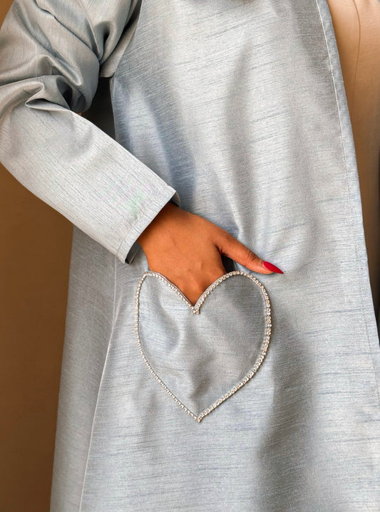 MEI725 - Light Blue A-Cut Taffeta & Crystals Abaya with Headscarf