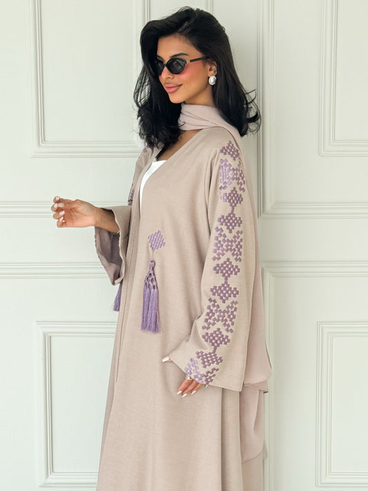 MEI620 - Nude Abaya with Lavender Embroidery