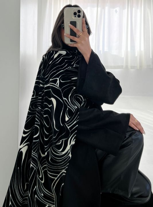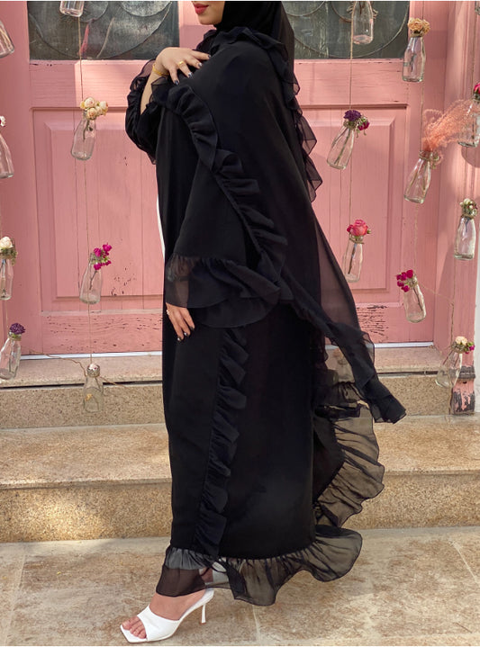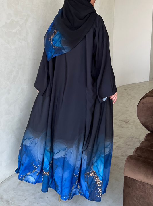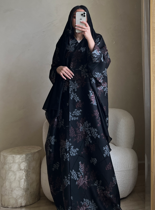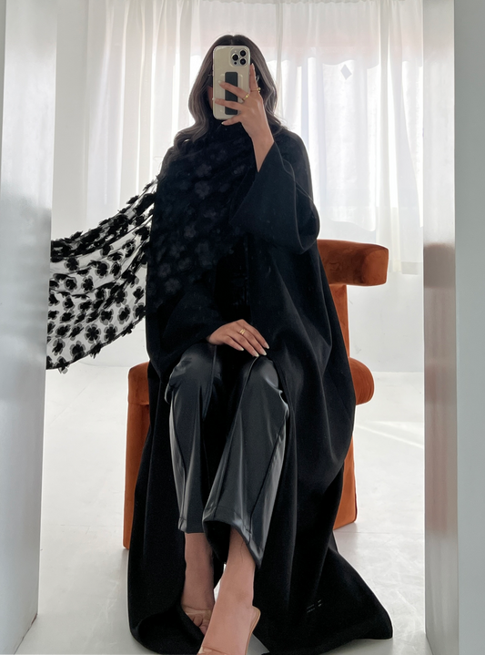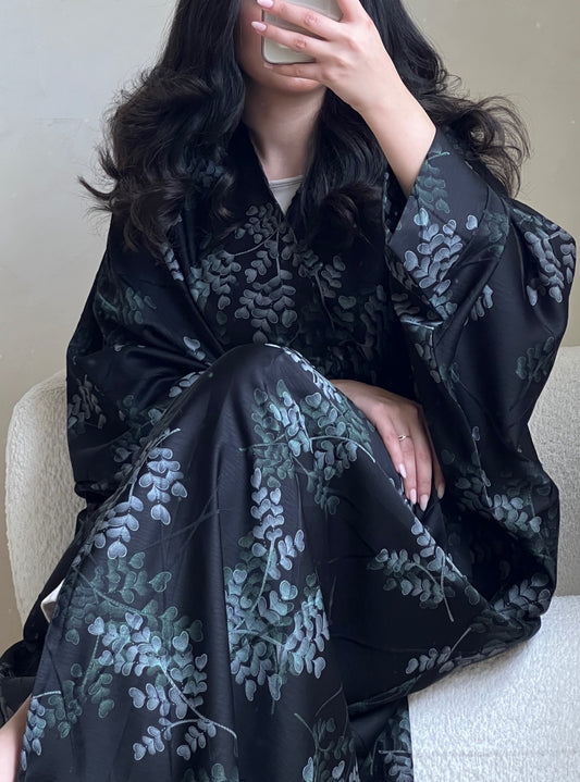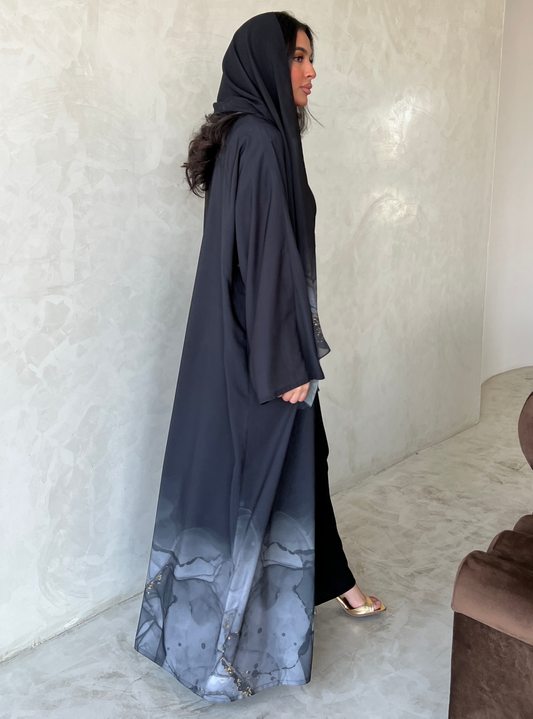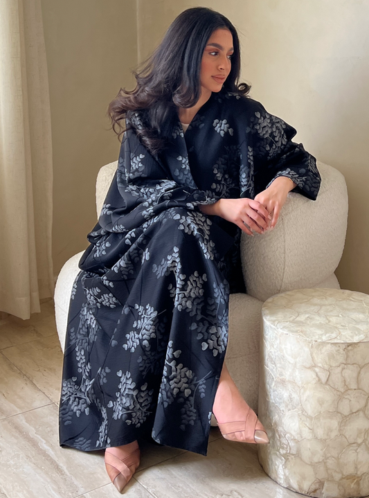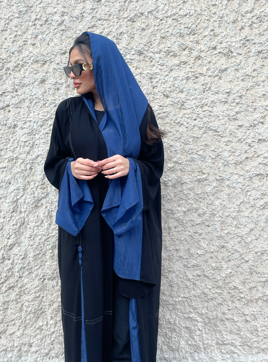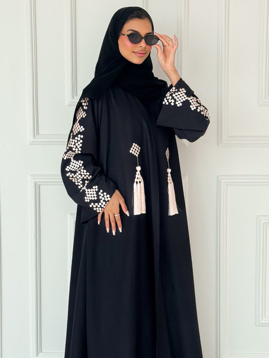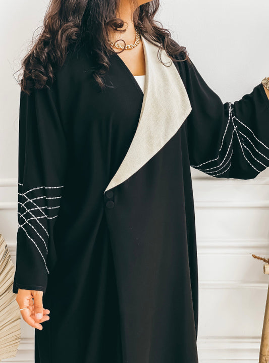 MEI608 - Indian Linen Abaya with Off White Embroidery