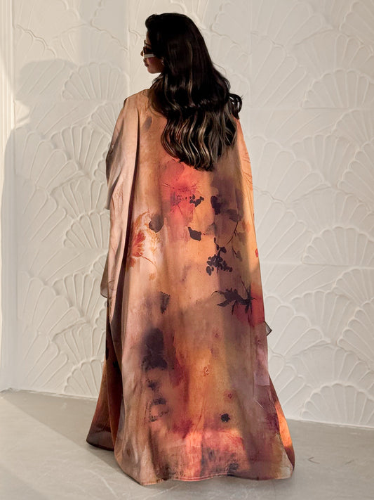 MEI626 - Brown Floral Print Abaya