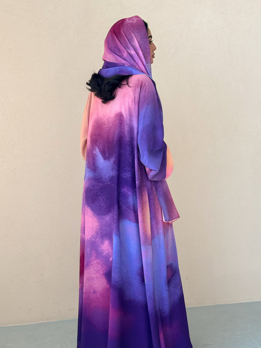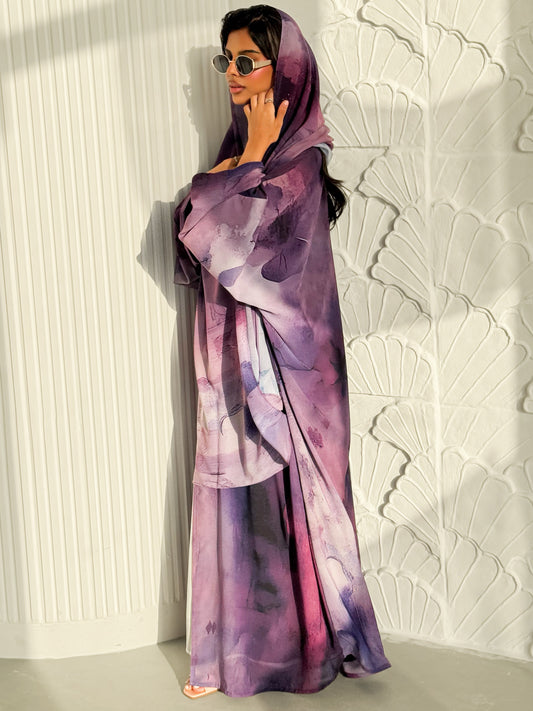 MEI624 - Purple Floral Print Abaya