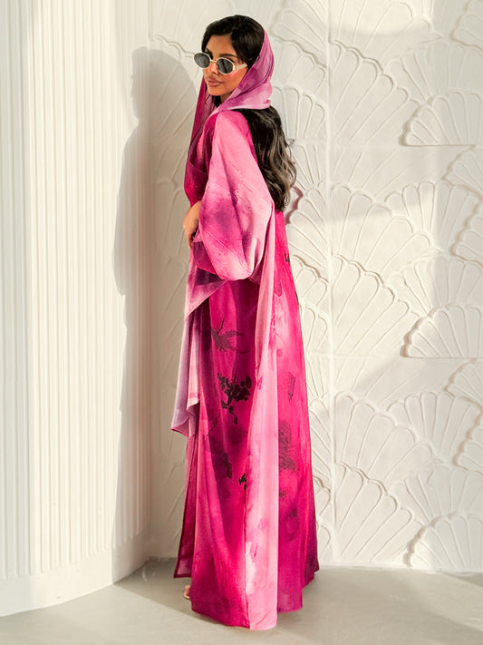 MEI625 - Pink Floral Print Abaya