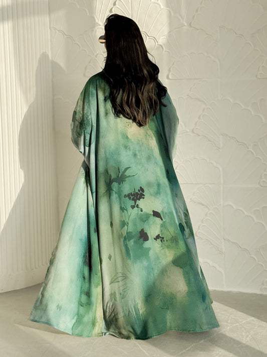 MEI627 - Green Floral Print Abaya