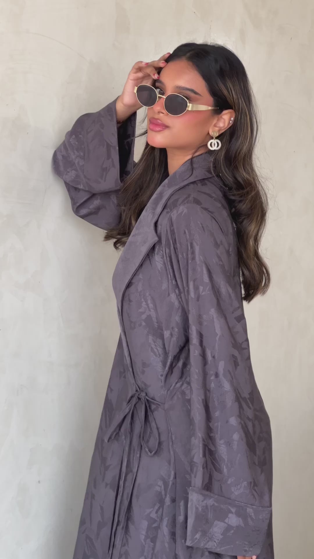 Grey Collar Blazer Cut Abaya with Floral Jacquard Print
